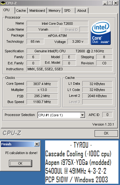Для достижения подобного результата пришлось разогнать Core Duo T2600ES до 3837.4MHz