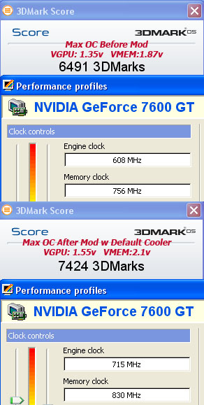 Shamino сделал вольтмод и смог разогнать видеокарту XpertVision 7600GT Sonic до частот 715 МГц по ядру и 1660 МГц по памяти. Счастливым обладателям XpertVision 7600GT Sonic даю ссылку на этот ценный вольтмод.