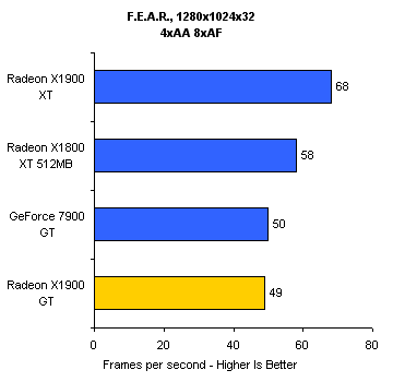 Сердцем Radeon X1900 GT является R580 - один из самых мощных GPU на сегодяшний день. Хотя чип используемый в X1900 GT и лишен 12 пиксельных конвейеров, это не сильно усугубляет положение дел, и карты на его основе показывают достаточно неплохие результаты. Пока все же тяжело понять позиционирование этой карты на рынке, так как, к примеру, карты X1800XT, показывая более высокие результаты, что видно из приведенных графиков, стоят дешевле, чем карты X1900 GT. Однако не будем забывать, что карты только появились на рынке, и можно быть уверенным, что со временем ATI "выжмет" из X1900 GT еще больше, так же, как это происходило с X1800 XT после ее анонса в октябре прошлого года.