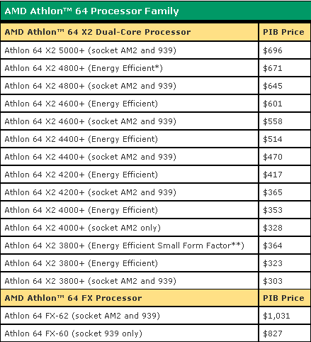 В официальном прайсе Вы можете увидеть, что цена одинакова как для АМ2 так и для S939 с равнозначными рейтингами. Как видим за отсутствие одной ножки (S939 – 939 ножек, АМ2 - 940), AMD не захотела скинуть пару $ :)