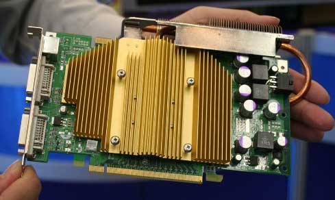 Компания Albatron продемонстрировала прототип видеокарты, основанной на базе GeForce 7900GT. Система охлаждения пассивная и включает в себя два радиатора, соединенных медными тепловыми трубками. Первый радиатор закрывает собой GPU и, по всей видимости, память, а другой расположен с обратной стороны PCB.