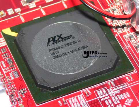 Чип PLX PEX8532 поддерживает до PCIe x32, 8 GPU и имеет корпус PBGA с 680 выводами 35мм x 35мм. Новинка базируется на базе двух RV530 (RADEON X1600 Pro), имеет частотную формулу 450/1380 ГГц и 1 Гб GDDR3-1,4 нс памяти производства Samsung. Помимо технологии Crossfire, новинка позволит использовать один из чипов для обсчета физики в играх.