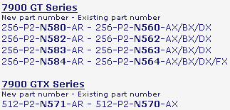 Месяц назад, ресурс ComputerBase на своих страницах поделился интересной информацией. Оказывается, что существуют покупатели, которые недовольны своими свежеприобретенный GF 7900 GT/GTX. И делятся своими впечатлениями в разных тематических форумах. При высокой нагрузке на GPU начинают появляться артефакты или же зависание системы. Такие проблемы возникают в играх Oblivion и Cellfactor, а также в тесте Deep Freeze из пакета 3DMark06. Причем не зависимо от того, разогнана видеокарта или нет. Можно было бы ссылаться на недостаточное охлаждение чипа, переразгон или же слабый блок питания, используемый с системе. Но, компания EVGA признала, что такая проблема существует и предлагает своим клиентам заменить их видеокарты на новые, согласно приведенной ниже таблички.