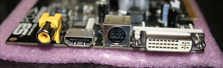 Видеокарта выполнена на PCB черного цвета и имеет весьма скромную систему охлаждения. А вот наличие интерфейса HDMI говорит о том, что фотографии не могут быть старыми. Кроме того, мы видим что имеются также DVI, S-video и судя по всему композитный выход RCA («тюльпан» - проще говоря), что говорит о позиционировании видеокарты в качестве основного узла домашней развлекательной системы.