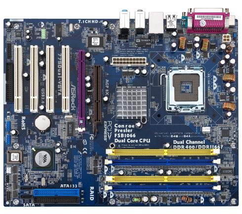 Честно говоря, эта новость меня сначала даже рассмешила. Разве можно себе представить связку из процессора Intel Core 2 Duo и видеокарты с интерфейсом AGP? Можно, отвечает производитель Asrock и демонстрирует материнскую плату 775Dual VSTA.