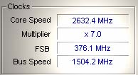 Также был, произведет разгон процессора по шине FSB (коэффициент в таком процессоре заблокирован) и плата продемонстрировала вполне неплохой результат, равный 375 МГц (1500 QPB).
