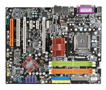 Новинка от MSI основа на логике Intel 975x и поддерживает все современные процессоры LGA 775, разумеется, и Core-2-Duo. А в качестве северного моста используется ICH7DH. Плата обеспечивает поддержку технологии ATI CrossFire – но только как 2 по PCI-Express-x8. обещана поддержка памяти стандарта DDR2-1066.