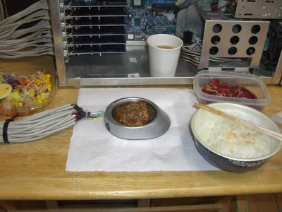 Как думаете, можно ли к USB подключить печку для готовки пищи? Запросто! Для этого необходимо взять шесть (!) пятипортовых USB адаптера, тридцать USB-шнуров и кучу всего остального :) .