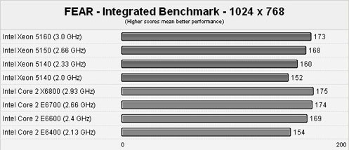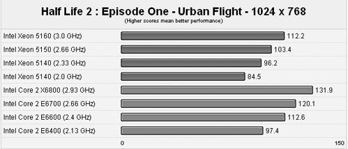 На самом деле меня больше заинтересовали результаты тестов этих двух флагманов. Перейдя по этой ссылке, Вы сможете ознакомиться с весьма интересным сравнением Intel "Woodcrest" Xeon 5160 (3.0 GHz) и Core 2 Extreme X6800 (2.93 GHz).