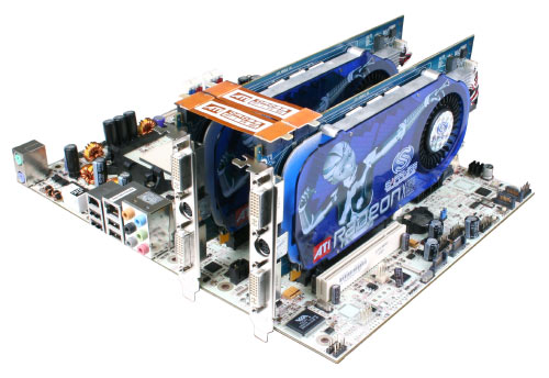 Ну а напоследок, фотография двух видеокарт Sapphire X1950 Pro объединенных в режим CrossFire на материнской плате Sapphire Pure CrossFire 3200.