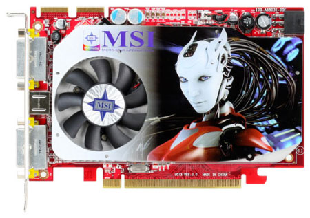 Видеокарта поддерживает два DVI (желтого цвета) и TV-выход, а так же два разъема для CrossFire.