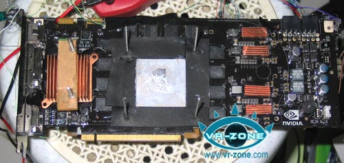 Ну а что насчет самого процессора? Его ядро велико, с высокой теплоотдачей, к тому же крепежные отверстия для штатного кулера отличаются своим расположением от конструкций предыдущих моделей видеокарт от NVIDIA. Отверстия расположены в форме квадрата со стороной 58,25 мм. В качестве крепежа понадобятся болты диаметром 2-2,5 мм.