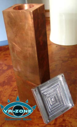 Итак, что надо делать? Вначале, необходимо взять медный радиатор с чипсета какой-нибудь материнской платы, болты, гайки и кусок пластика, используемый в качестве зажимной пластины. Заметьте, радиатор смещен относительно отверстий, поэтому один край прижимной пластины толще, дабы создать равномерное усилие на радиатор.