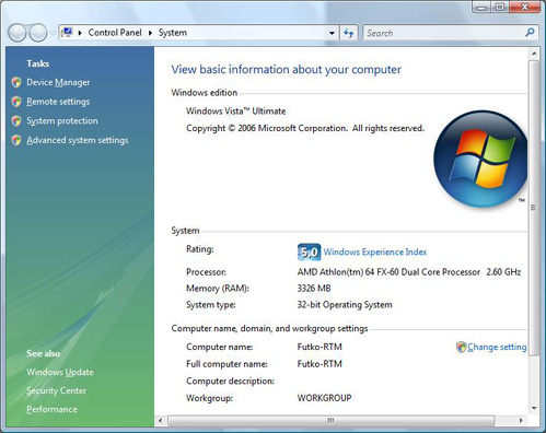 Шеститысячная сборка Vista установилась за 25 минут. Апгрейд же версии RC2 build 58xx займет около часа. Beta-драйвера на Creative Labs X-Fi и контроллер SATA SiL3132 встали без проблем и функционировали нормально. Тестовый компьютер был оснащен 4 Гб ОЗУ, но 32-х битная Vista «увидела» только 3,25 Гб и после завершения загрузки использовала не более 750 Мб памяти. Субъективно, система работает намного шустрее, к тому же отсутствует какой-либо свопинг (при наличии более 2 Гб оперативки).