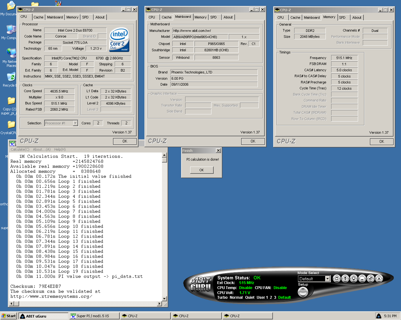 Использовались версии BIOS 1.5 и 1.9 beta. Для управления разгоном из ОС в v1.9 применялся CrystalCPUID.