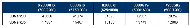 Как видно, в среднем по показателям этих замеров Radeon X2800 XTX на 5-7% быстрее GeForce 8800 GTX, а Radeon X2800 XT на 6-11% быстрее GeForce 8800 GTS. Еще раз напомним, что официальных тестов еще не было.