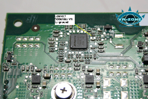 В отличие от вольтмода памяти, малое сопротивление в цепи питания процессора не позволяет применить карандаш. Необходимо использовать переменный резистор на 500 Ом. Остальные действия такие же – резистор на максимум, затем плавное понижение. Не забудьте припаять вторую ногу к «земле».