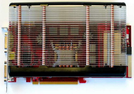 Массивный радиатор покрывает всю длину платы и основан на четырех медных тепловых трубках. Accelero S1 разбивает миф о низкой эффективности пассивных систем VGA-охлаждения, показывая температуру графического чипа X1950 Pro всего 63 градуса Цельсия, что меньше 67С при использовании штатного Красного Кулера. И это при полной бесшумности. Микросхемы памяти и модули системы питания охлаждаются дополнительными радиаторами.