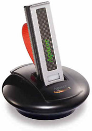 Главный конек устройства – кожаный ремешок может быть четырех цветов: красный, синий, зеленый и оранжевый, от чего также зависит доступный объем – от1 до 8 Гб. Опционально Handy Steno AH520 может поставляться с док-станцией, которая имеет встроенный ионный фильтр воздуха.