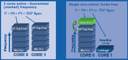 Эта технология позволяет использовать вычислительную мощность, высвобождающуюся при отключении одного из ядер, для повышения производительности работающего ядра, путем повышения коэффициента умножения процессора на 1.