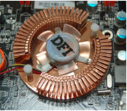 LAN Party UT NF680I LT SLI-T2R может похвастаться оригинальной системой охлаждения северного моста, которая представляет собой комбинированный вариант обычного радиатора и кулера на тепловых трубках, который, видимо, будет обдуваться небольшим вентилятором.
