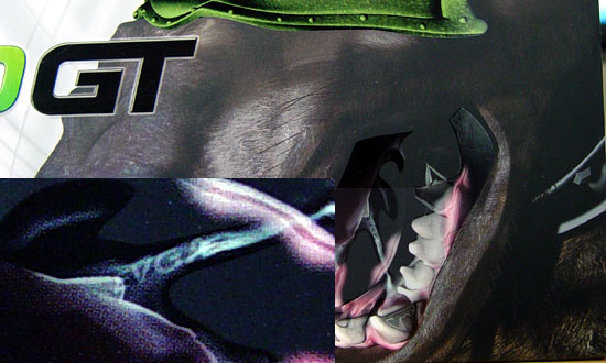 Как нам стало известно, на коробках для видеокарт XFX 8600 был добавлен новый графический элемент. Теперь из раскрытой пасти собаки капают «слюни». Но не это главное. Все заключается в самой слюне. На коробках для 8600 GTS ничего примечательного нет. А вот на упаковке для видеокарты 8600 GT, если присмотреться, виден довольно-таки нечеткий графический логотип конкурирующей компании EVGA, который, кстати, и размещен, где бы вы думали? Именно на слюне. Не верите? Рассмотрите рисунок.