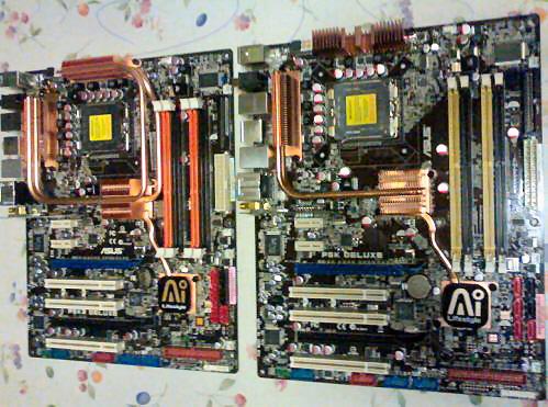P5K-Deluxe, отличающиеся, кроме используемого типа памяти системой охлаждения. Она выглядит намного солиднее на P5K3-Deluxe (чувствуется предпочтение ASUS новой памяти) и состоит из единой системы на основе тепловых трубок и охлаждающая все горячие компоненты платы.