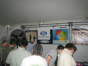 Компания продемонстрировала новые процессоры, используемые в платформе Quad FX, которая включается в себя материнскую плату на чипсете RD790 совместно с двумя 4-х ядерными процессорами Phenom FX и видеокарту ATI Radeon HD 2900 XT.