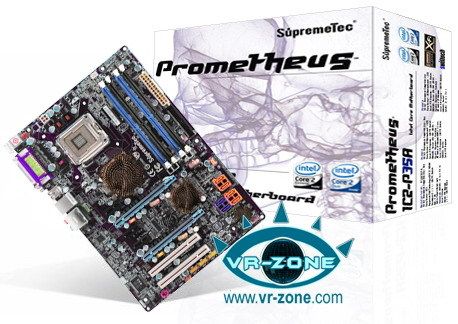 Плата основана на чипсете Intel P35, а из уникальных особенностей Prometheus IC2-P35 можно отметить пассивную систему охлаждения Swiftech, которая достойно заменит собой сплетения тепловых трубок и радиаторов, приминяемые именитыми производителями. Безусловно, высокоэффективная система охлаждения будет позитивно способствовать разгону, но вот 3х-фазная система питания не соответствует современным требованиям серьезного оверклокинга. Также присутствует встроенная 7.1-канальная звуковая плата Sound Blaster X-Fi от Creative, в отличие от обычного HDA-кодека.