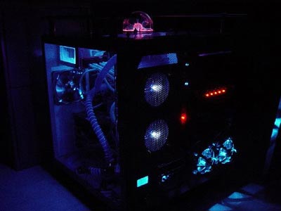 Заключительным шагом стала покраска кейса краской "хамелеон", которая при свете меняет свой цвет. Никак не обошлось без моддерской подсветки, реализованной парочкой синих катодок.