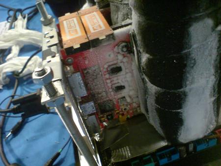 Видеокарты были разогнаны до показателей 1080 МГц ядро и 999 МГц память. Как видно на скриншотах, Kinc использовал довольно серьёзную систему охлаждения. Достаточно высокая влажность при процессе разгона не позволила, увы, достичь более высоких показателей в бенчмарке.