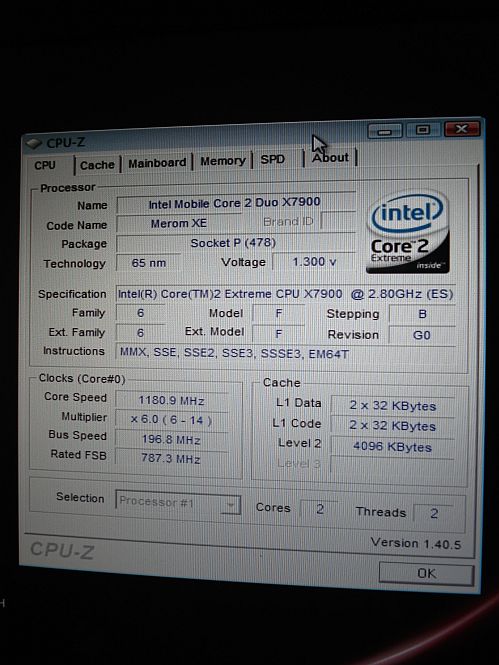 Мы недавно сообщали об анонсе 22-го августа компанией Intel самого быстрого на сегодняшний день мобильного процессора Intel X7900 2.8 ГГц. Производители лэптопов собирались выпустить на рынок свои мобильные решения на базе данного процессора спустя 2-3 недели. Но наши коллеги с портала Fudzilla не дремлют: они уже успели попробовать в работе ноутбук на базе нового мобильного флагмана. Естественно, что все испытания проходили под грифом «секретно» - данный портал славится симпатией преподнести новость под таинственной завесой. Известно лишь, что лэптоп, побывавший на экспериментальном стенде Fudzill’ы, принадлежит «…одному очень крупному производителю ноутбуков» и на всеобщее обозрение вынесен лишь скриншот программы CPU-Z. Спасибо и на этом: