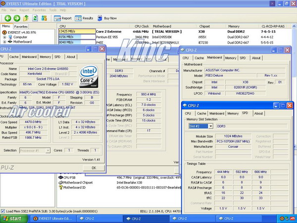 Pctuner регулярно попадают в руки всяческие «вкусности» в виде технологических новинок. Вот и на этот раз им представилась возможность попробовать на прочность передовое «железо»: материнскую плату ASUS P5E3 Deluxe на чипсете Intel X38; процессор Intel Core 2 Duo Extreme Q6850 3,00 ГГц с воздушным охлаждением, разогнанный до 4,47 ГГц; оперативную память Corsair DDR3 Dominator 2 Гб. Память безупречно работала на частоте 2000 МГц с таймингами 7-6-5-15 1T.