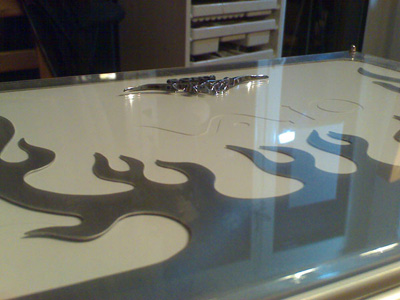 Когда все было готово, моддер просто наложил результат своего труда на крышку ноутбука и сверху прикрыл металл листом плексигласа. Как видим, использование простых и недорогих материалов не помешало blackwolf создать стильный и неповторимый проект.