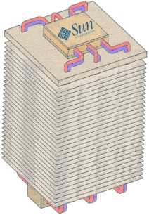 Новая технология охлаждения, использует магнитогидродинамический эффект, для того чтобы открывать и закрывать крошечные внутренние клапаны в трубах, перемещая воду, и создавая тем самым «насос» без каких либо движущихся частей. А сам принцип остается тем же: отвод тепла с помощь жидкости от источника к ребрам радиатора, где тепло благополучно рассевается. Самый большой плюс данной системы – это ее большая эффективность при низком энергопотреблении и уровне шуме. И, не смотря на кажущеюся сложность технологии, Sun считает, что она окажется достаточно эффективной и будет успешно применятся в серверах и настольных компьютерах, и поскольку она хорошо масштабируется, то сможет применяться для охлаждения чипсетов и других микросхем с большим выделением тепла.