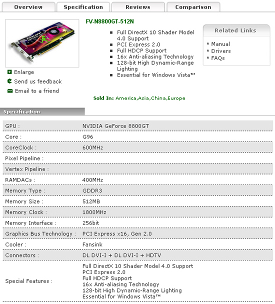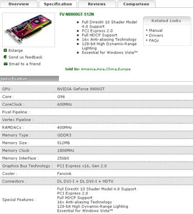Сегодня утром с официальным сайтом Foxconn творились настоящие чудеса. В результате чего там появилась информация о новой видеокарте nVidia GeForce 8800 GT, но сотрудники Foxconn не только напутали со сроками выхода данной видеокарты, но и с характеристиками. Так, вместо известного всем нам ядра G92, там было указанно G96. Но на этом путаница со спецификациями заканчивается, и все остальные характеристики соответствуют раннее полученным данным, разве что не было указанно количество потоковых процессоров.