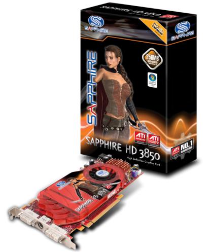 Вторая видеокарта, Sapphire HD 3850, является немного урезанной версией HD 3870. Имеет более низкие частоты ядра и памяти – 670/1660 МГц, использует более медленную память GDDR3 и при этом имеет вдвое меньше объем – 256 Мб. Но благодаря всему этому она оснащена однослоговой системой охлаждения.