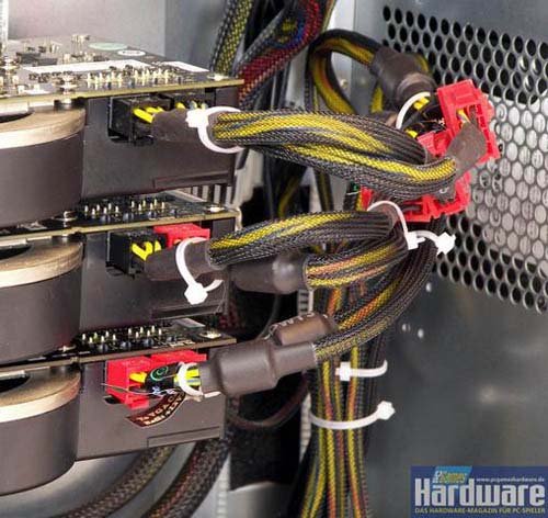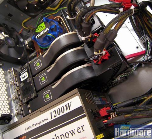 Видеокарта Geforce 8800 Ultra имеет довольно высокое энергопотребление, поэтому неудивительно, что Nvidia рекомендует для тройного SLI блок питания мощностью 1100 W. Тестерами использовался один из самых мощных современных блоков питания 1200W компании Thermaltake.