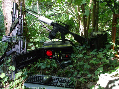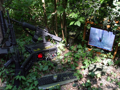 Оптический привод также претерпел изменений, теперь он вынесен наружу и имеет свой отдельный внешний кейс. В конце работ моддер окрасил мышку и клавиатуру в характерный для военной техники зеленый цвет. Более того, для создания эффекта настоящего боя, М81 решил провести фотосессию прямо в лесу и специально для этого смастерил из дерева некоторые декоративные элементы, имитирующие коробочки для патронов, а также приобрел макеты оружия и настоящий бинокль.