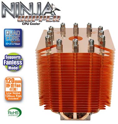 Конструктивно SCNJ-CU1000 (именно такой номер модели новинки) состоит из 12 тепловых трубок, отводящих тепло от медного основания и подсоединенного к ним радиатора размером 110 x 110 x 150 мм. Желающие повысить и без того немалую производительность модели могут создать дополнительный обдув радиатора с помощью 120-миллиметрового вентилятора Scythe Slip Stream 120, вращающегося со скоростью 800 об/мин. Его производительность составляет 40,17 CFM, а создаваемый при работе шум находится на уровне 10,7 дБ.