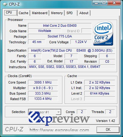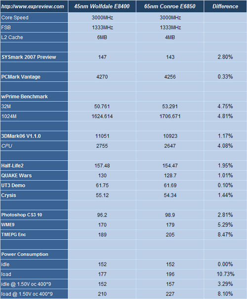 На сайте expreview.com появился первый обзор нового процессора Core 2 Duo Е8400. Результаты тестов в сравнении с представителем старого семейства Core 2 Duo Е6850 приведены в таблице.