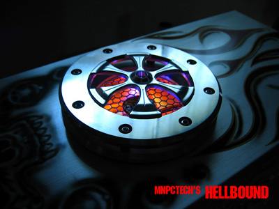 Уже из названия видно, какой тематике посвящен проект. На этот раз Билл решил не делать каркас с нуля, а взять обычный алюминиевый кейс и декорировать его. Для начала автор вырезал на боковой крышке корпуса фигурное окно под череп, объятый пламенем, затем, с тыльной стороны, моддер прикрутил стальную сетку. Что касается цвета, то Билл выбрал ярко-красный. Отдельно стоит отметить замысловатый узор на заглушках 5,25-дюймовых отсеков под приводы, и стальные наконечники на заглушках под 3,25 фдд-дисководы, теперь, видимо, превратившихся в реобасы.