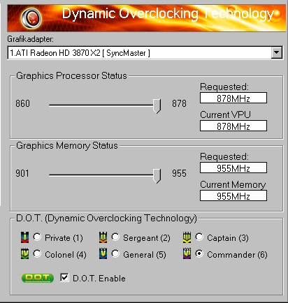 Разгоняли посредством D.O.T. - Dynamic Overclocking Technology – входящей в состав Catalyst Control Center.