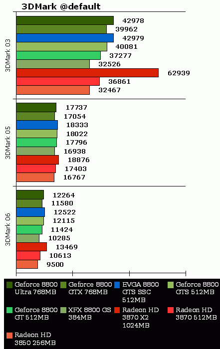 В Futuremark EVGA 8800 GTS SSC не имеет равных среди других представителей Nvidia- даже Ultra не догнала…, но это всего лишь «попугаи три-дэ-марка».