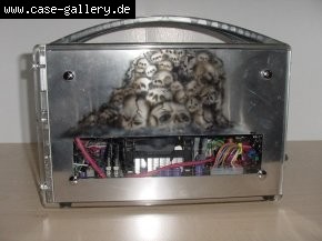 Раздумывая, с чего бы начать, Роберт пришел к выводу, что в качестве обшивки корпуса подойдет нержавеющая сталь. После сборки основы моддер вырезал небольшое окошко с одной стороны корпуса, а с другой установил небольшой светящийся вентилятор. На всю переднюю панель мастер прикрепил большой лист акрила, и с помощью светодиодов подсветил его. Сверху в глаза бросается довольно массивная ручка.