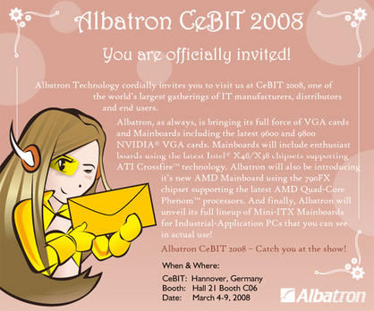 Чем ближе CeBit, тем больше земля слухами полнится. Мы уже сообщали об указании Nvidia своим партнерам в отношении 9800 GX2, так же как и о том, что вряд ли NDA станет такой уж непреодолимой преградой… по крайней мере, для некоторых. Сайт hardspell со ссылкой на своих коллег из www.pcgameshardware.de сообщает, что в числе этих первых «некоторых» будут Asus, которая так и заявила, что покажет свою EN9800GX2 и Albatron, которая упомянула серию 9800 в своих пригласительных.