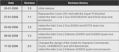 Известный ресурс Tech ARP.com выложил сегодня обновленную версию своего «Intel Core 2 Performance Comparison Guide». По большому счету изменений не так уж много по сравнению с предыдущей версией 1.3, добавлен процессор Core 2 Extreme QX9650 и изменен дизайн диаграмм.