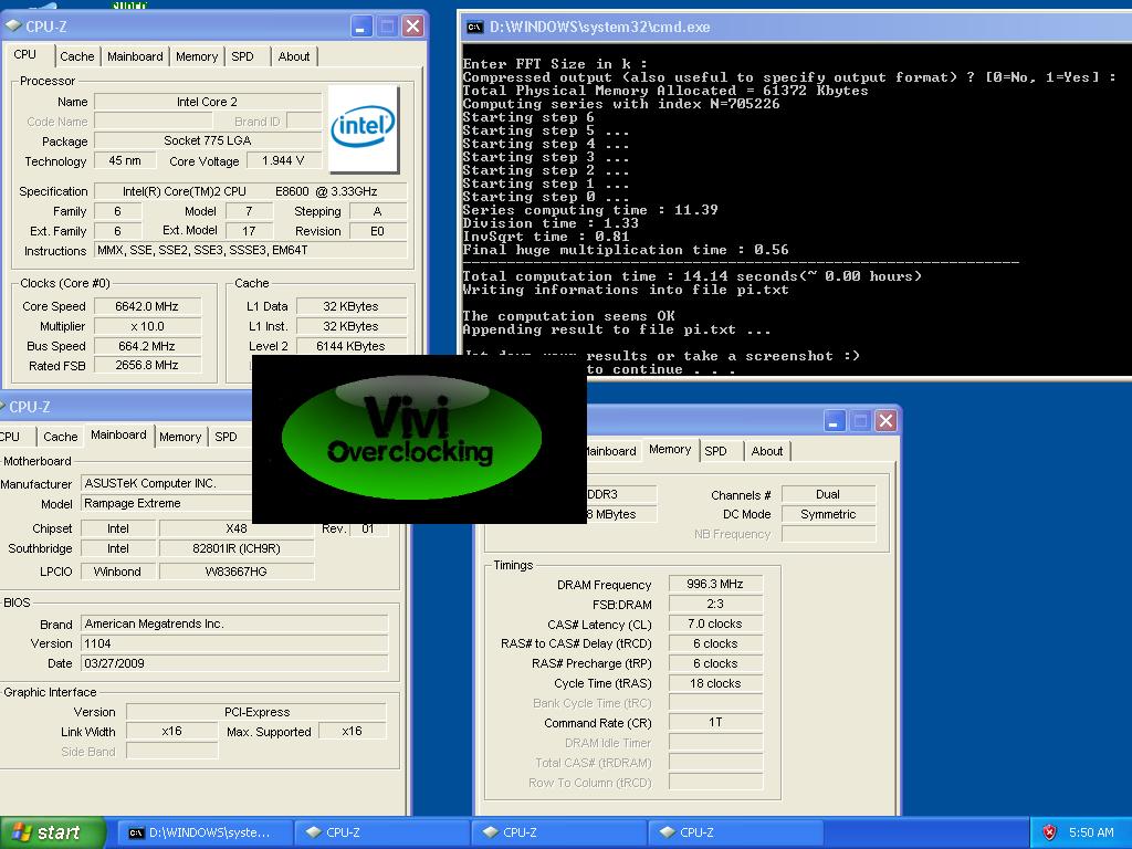 Если верить комментариям в описании, то его система не претерпела сколько-нибудь значимых изменений. Это все тот же процессор Core 2 Duo E8600 батча Q822A435, «раскочегаренный» в этот раз до частоты 6642 МГц при температуре -144°C, та же материнская плата ASUS Rampage Extreme X48, двухканальная память Corsair DDR3 серии Dominator, работавшая на частоте 1993 МГц с таймингами 7-6-6-18 1T, и блок питания Corsair HX1000W.