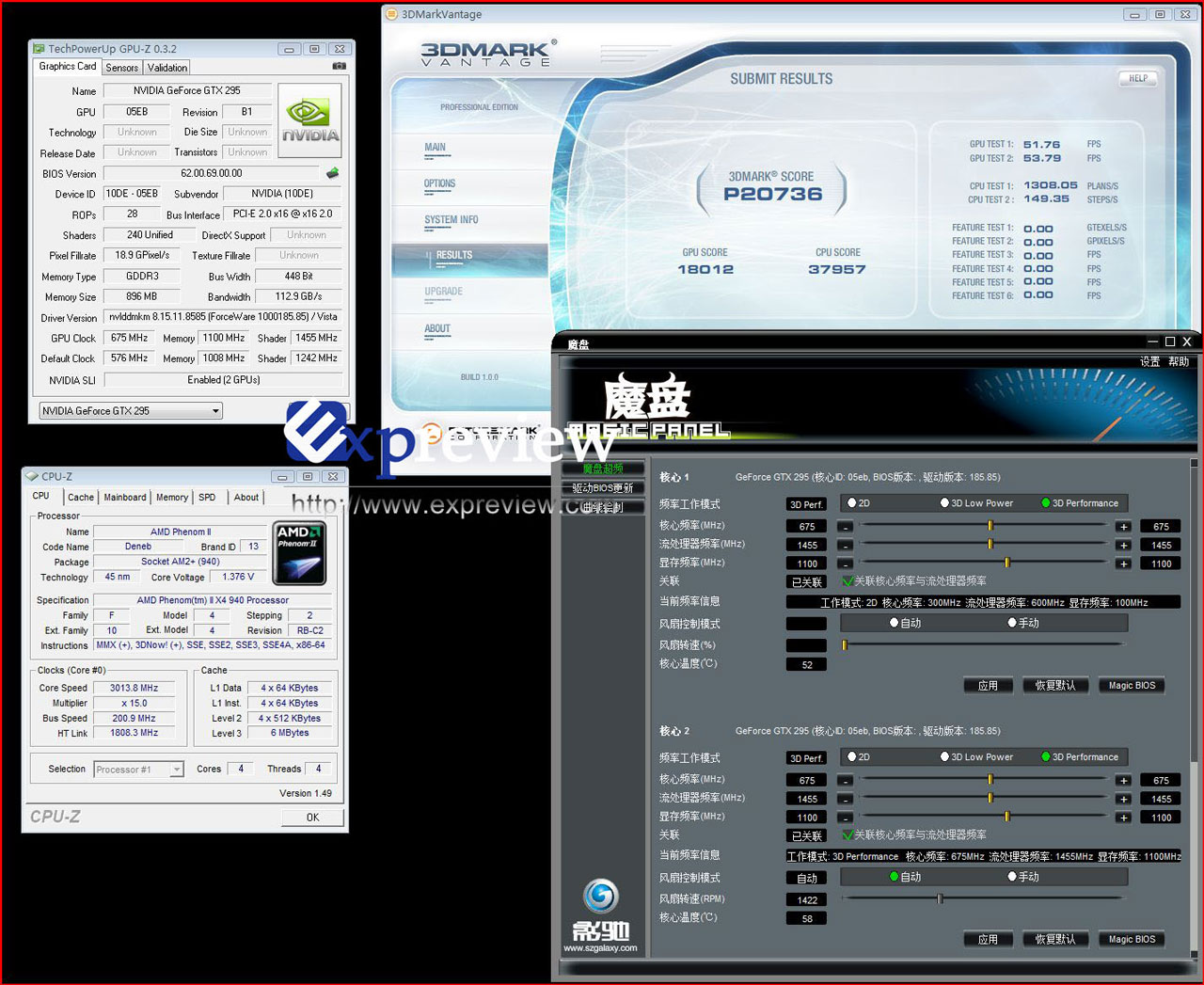 В ходе предварительных тестов в лаборатории Expreview Galaxy GeForce GTX 295 продемонстрировала неплохой разгонный потенциал. Надеемся, что хотя бы несколько десятков таких видеокарт завезут и к нам, в Украину.