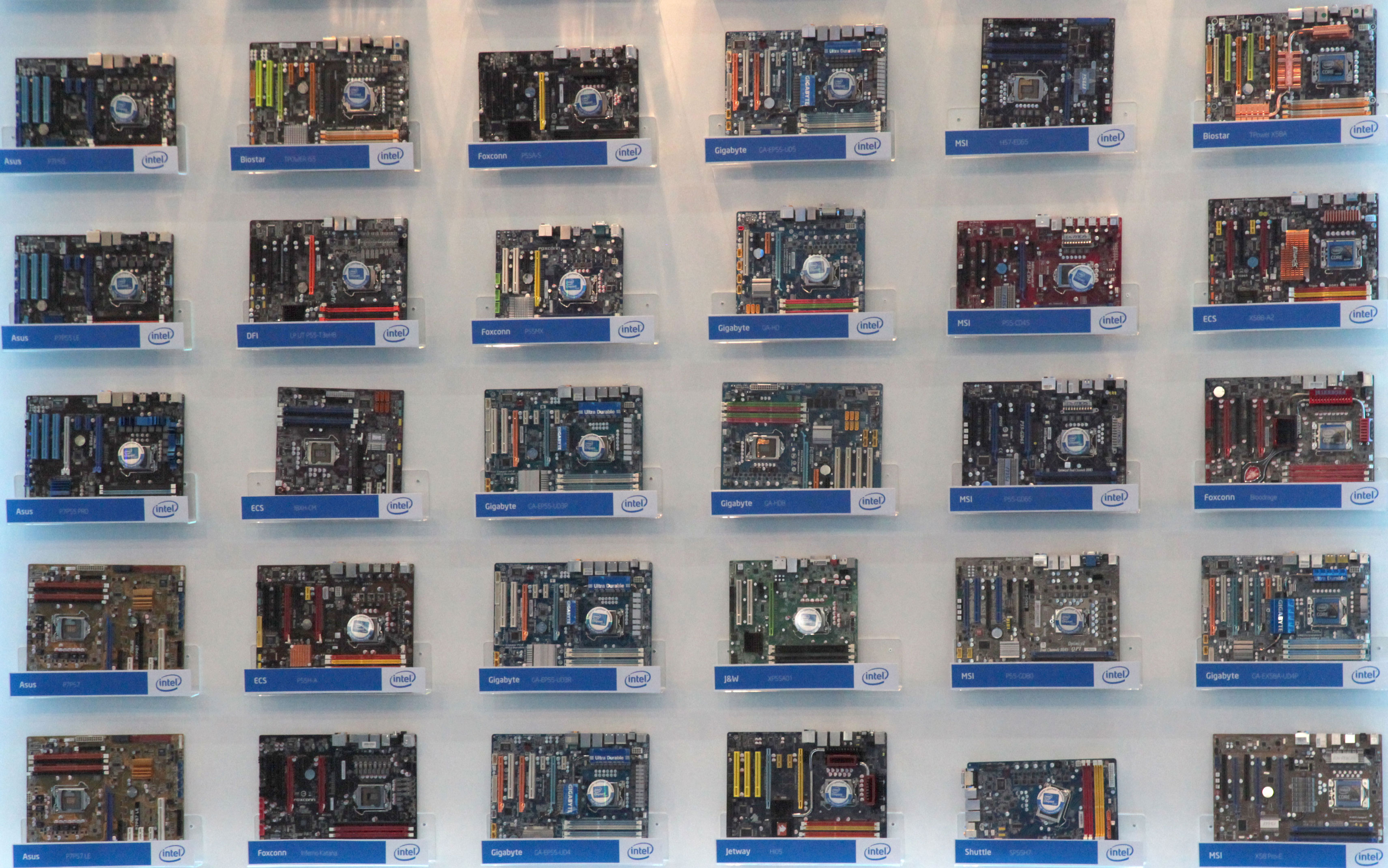 Нам остается лишь пожать плечами и поделиться с нашими читателями общим снимком 36 материнских плат производства ASUS, ECS, Foxconn, Gigabyte, MSI, Shuttle и других вендоров. Основная часть решений подготовлена для платформы LGA1156 (чипсет Intel P55 Express), нашлось место и для «экстремальных» плат X58.